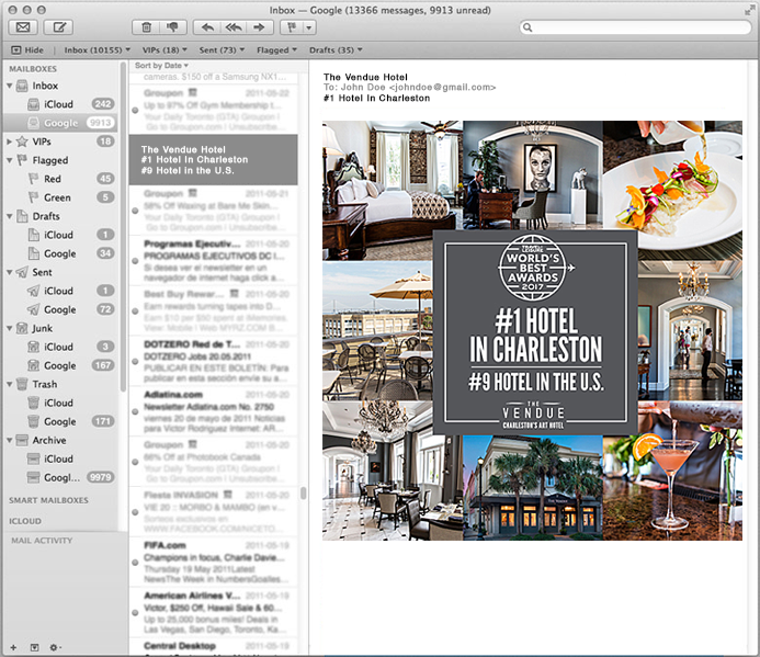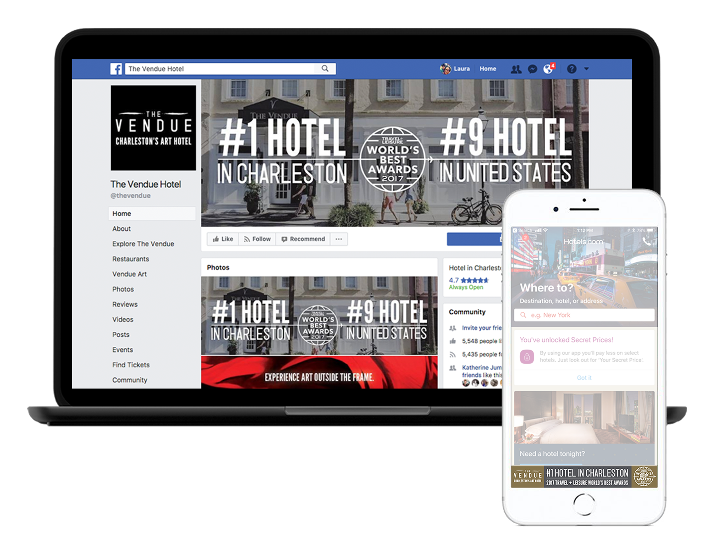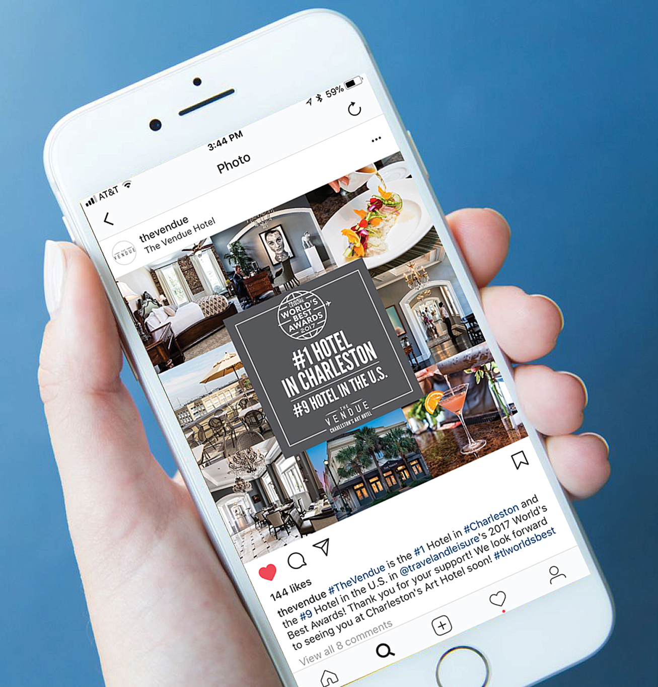that showcased Vendue Hotel as the “#1 Hotel in Charleston” as awarded by